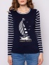 Women's long-sleeved T-shirt with a slightly slim fit, round neck with a striped trim, classic stripes, elastane blend cotton fabric, sailboat-inspired print on the front, small wo... More info