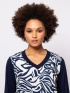 Women's long-sleeved T-shirt with flared cut, ribbed, fitted bottom, cuffs and v-neck, decorative patterns, cotton blend back and sleeves, soft polyester silk front, small metallic... More info