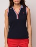 The meeting of chic and comfort! This women's top features classic lines, bright colours, a chic slim striped collar and sleeve rib for a timeless, sporty elegance to any look. Made from comfortable stretch cotton fabric. With its decorative neckline and small branding, it's a wardrobe staple. Material: 97% cotton, 3% elastane, pique. The model is 175 cm tall and wears size M.Less info