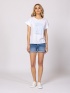 Women's short-sleeved T-shirt in cotton blended with modal, featuring a round neckline, dropped shoulder, lapel sleeves, large printed sailboat motif decoration on the front. Fabric: 50% cotton, 50% modal, single jersey. Model is 175 cm tall and wears size S.Less info